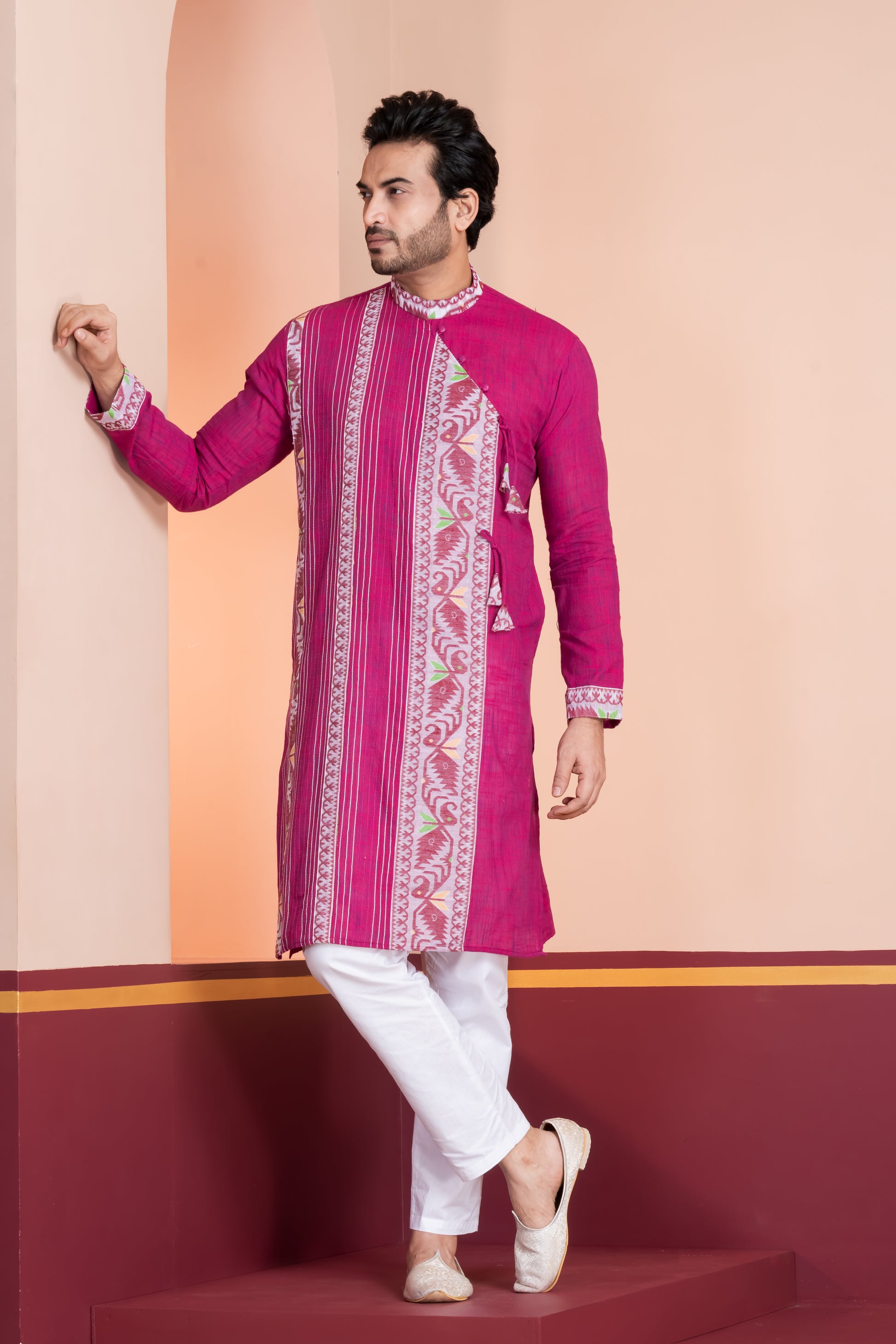 Experience the refined elegance of the Cotton Jamdani Side Neck, crafted from breathable, pure cotton for comfort and durability. The intricate Jamdani weaving adds a touch of traditional artistry, while the side neck design offers a contemporary silhouette. Perfect for both casual and formal occasions, this piece combines heritage craftsmanship with modern style for a distinguished look.