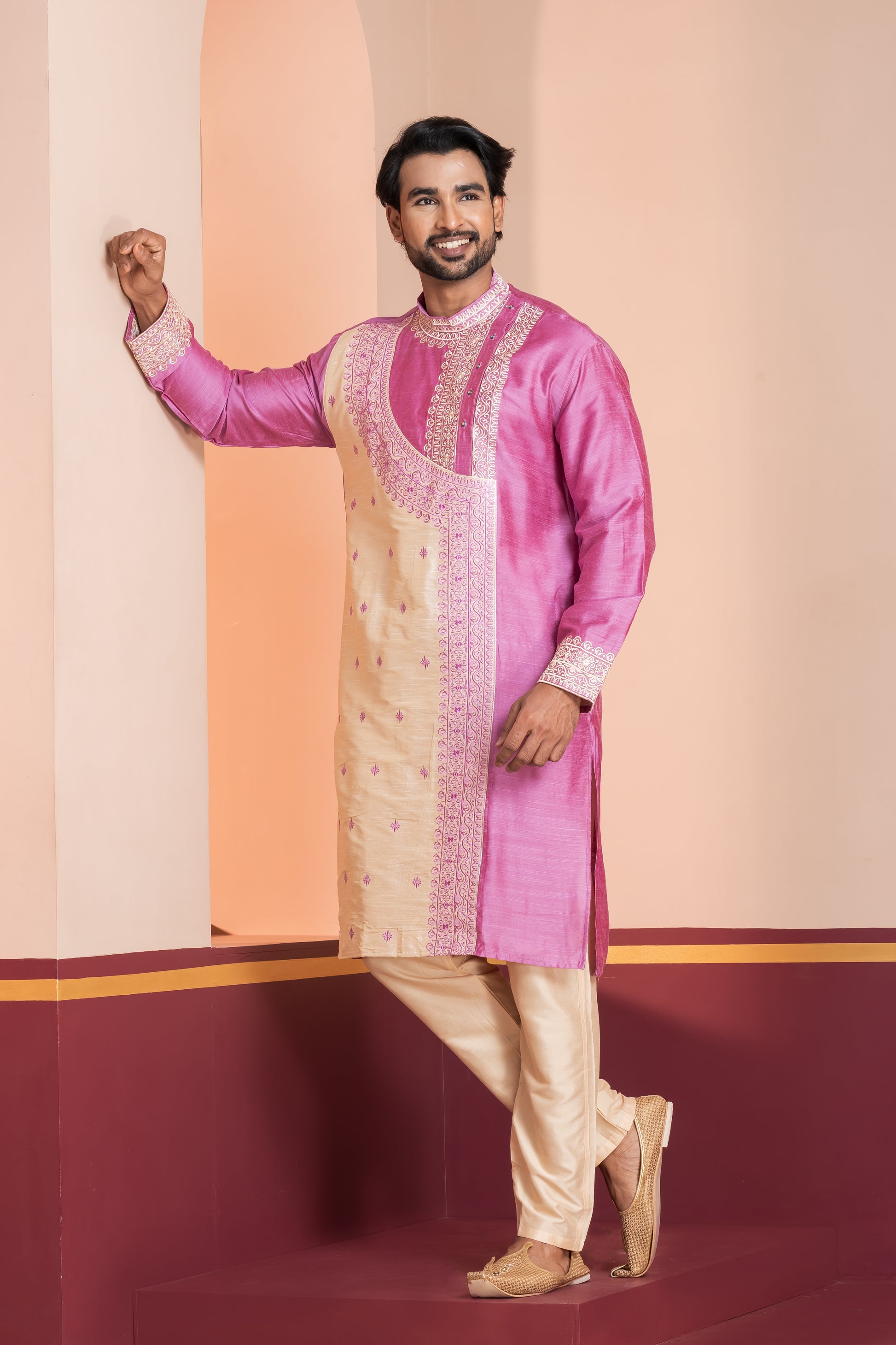 Raw Silk Side Neck Joint Panel (Pink)
