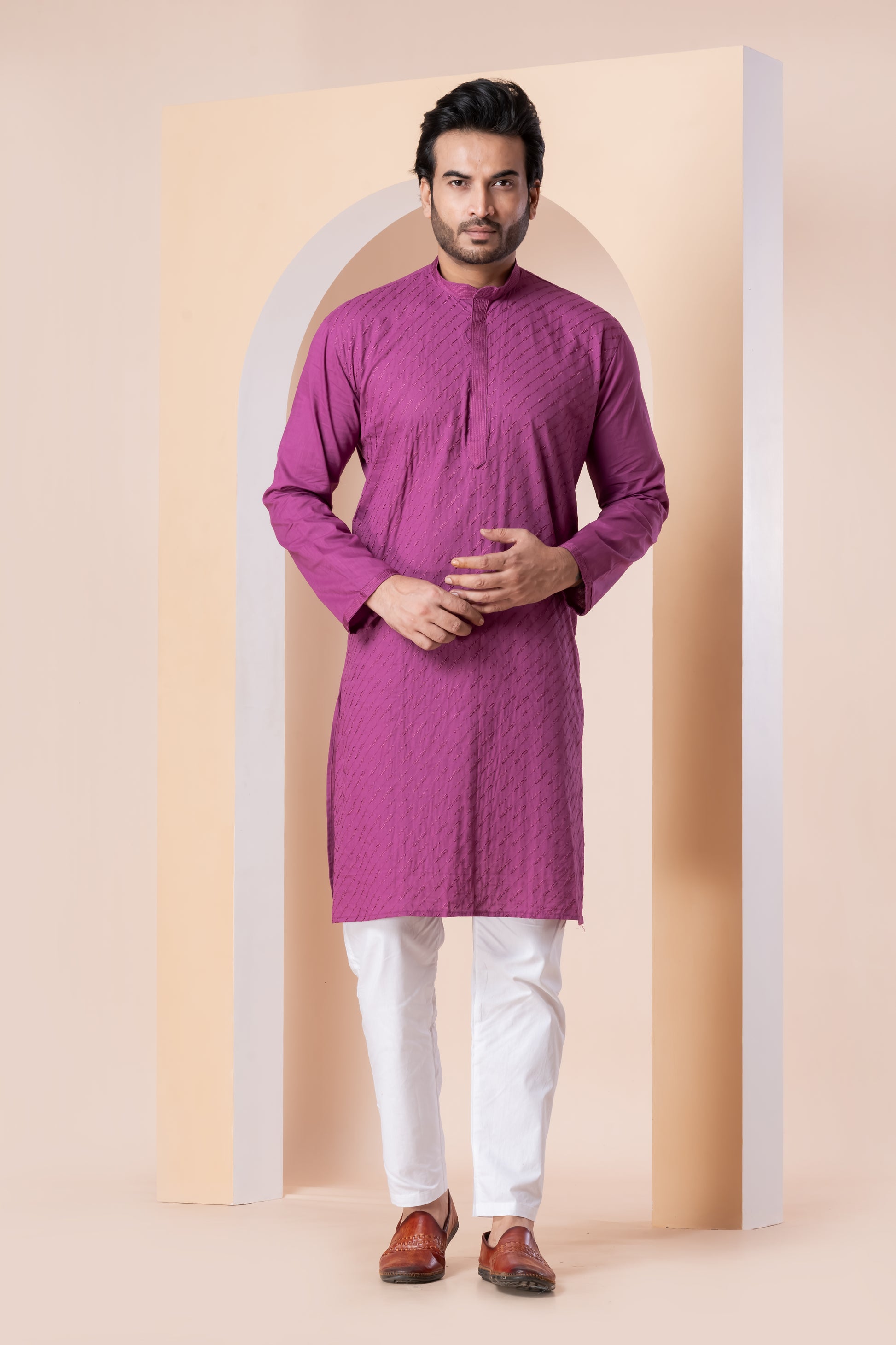 Thine Embroidery showcases intricate craftsmanship with detailed, precise stitching that highlights traditional techniques. Perfect for adding an elegant, timeless touch to your ethnic wardrobe, this embroidery enhances fabric durability while providing a refined aesthetic. Ideal for those seeking expert artistry combined with lasting quality in their garments.